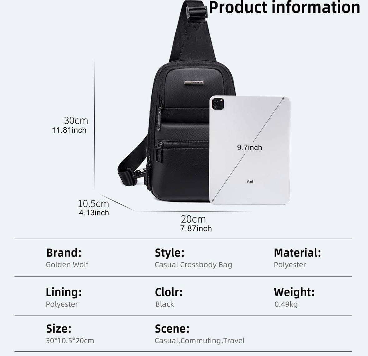🎒 Confortable et facile à porter, elle se porte en bandoulière ou sur la poitrine, avec une sangle ajustable pour un maintien parfait 💪. Idéale pour un usage quotidien, cette sacoche est un excellent choix pour ceux qui recherchent organisation, sécurité et style 🔥🖤.